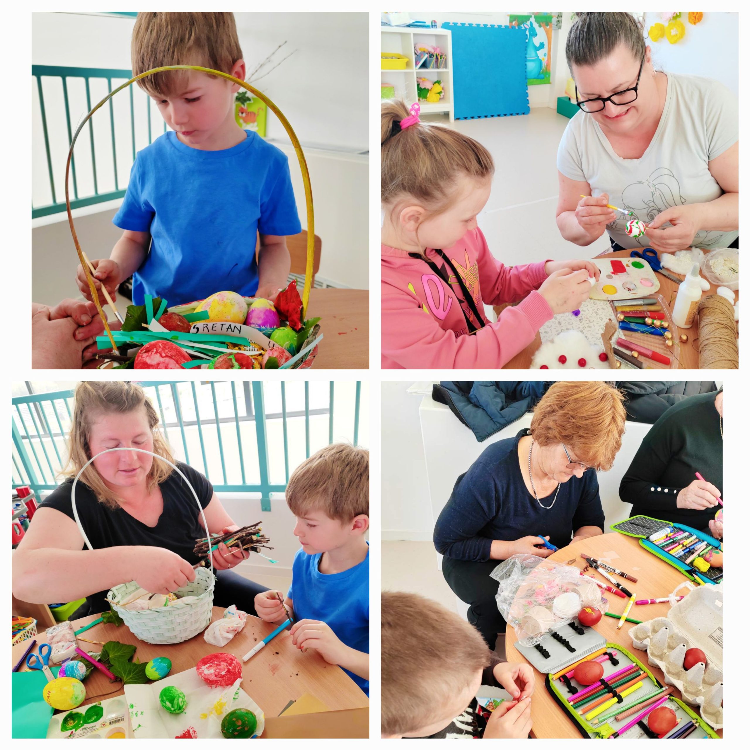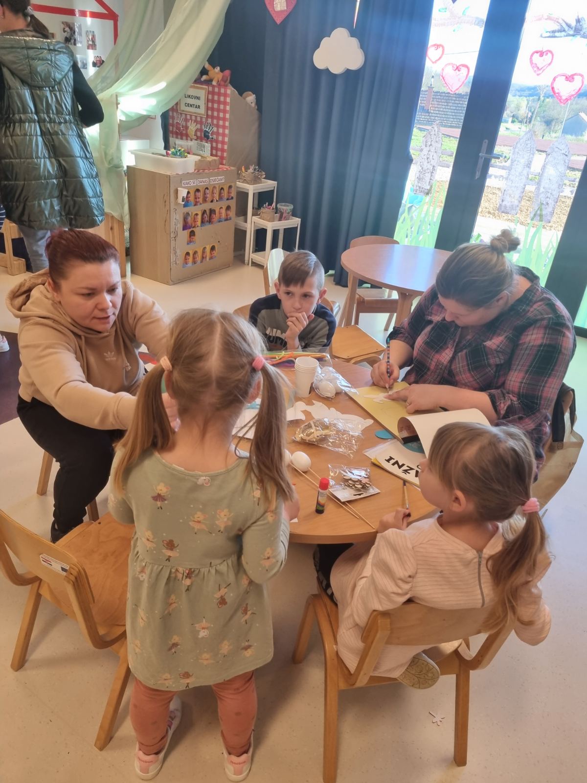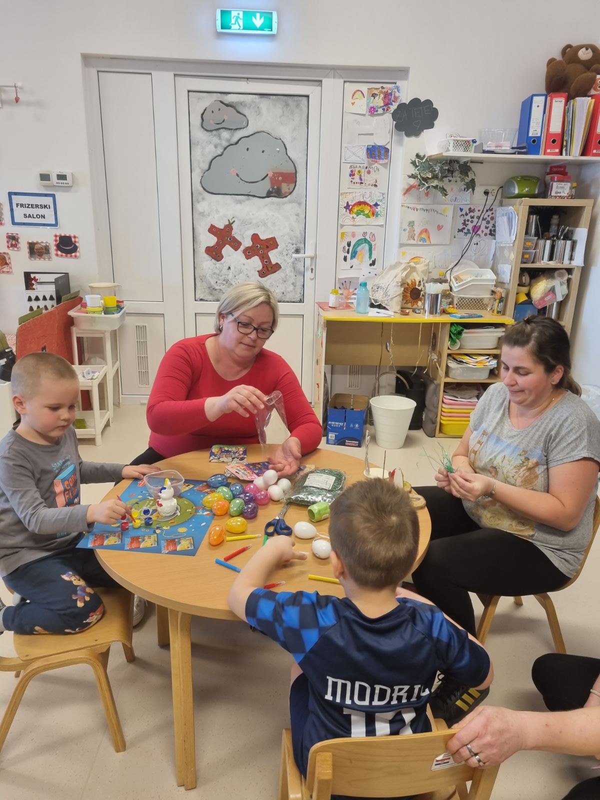 Polaznici Dječjeg vrtića Budinščina i polaznici predškole s radošću očekuju blagdan Uskrsa. Djeca već neko vrijeme prate buđenje prirode, rađanje novog života ( životinje i njihova mladunčad), istražuju simboliku jajeta te koje se životinje izlegu iz jajeta, što se nalazi u jajetu i sl. Sve nas je to uvelo u pripreme za Uskrs, a kako svaki blagdan volimo provesti uz svoje najdraže tako smo i povodom ovog blagdana upriličili uskrsne radionice na kojima smo se družili s mamama, tatama, bakama…Roditelji ,bake, braća koji su bili u mogućnosti, družili su se s djecom i odgojiteljicama te u opuštenoj atmosferi izradili prekrasne pisanice, uskrsne ukrase i čestitke koje smo izložili u hodniku vrtića. Hvala svima koji su došli i uljepšali nam ove blagdane !