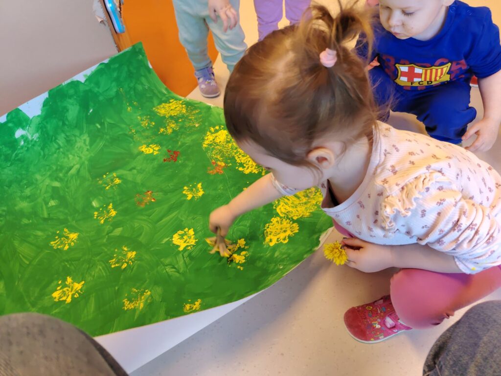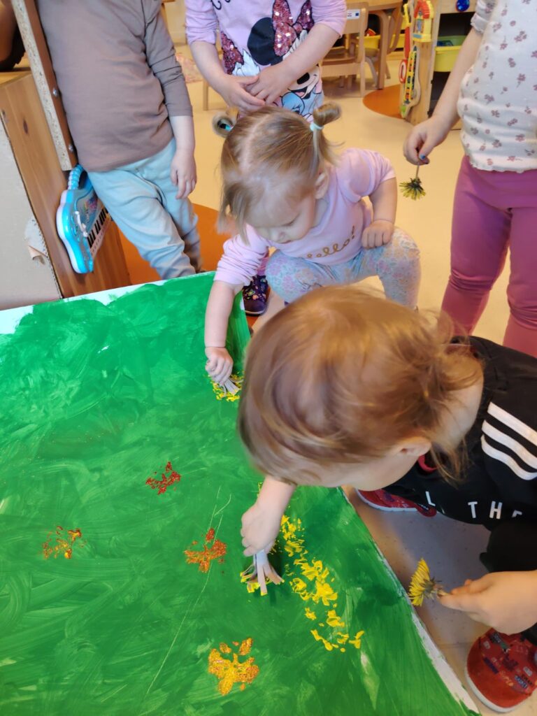 Svoje dojmove prenijela su i u likovnu aktivnost tapkanja maslačka na zelenu podlogu, razvijajući kreativnost i koordinaciju.