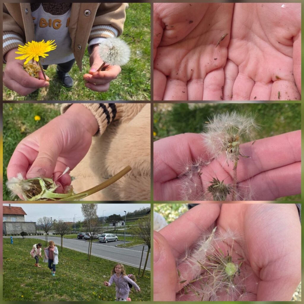 Veliko oduševljenje izazvalo je i puhanje maslačka pri čemu su djeca promatrala kako se sjemenke šire nošene vjetrom, učeći kroz igru o prirodnim procesima.